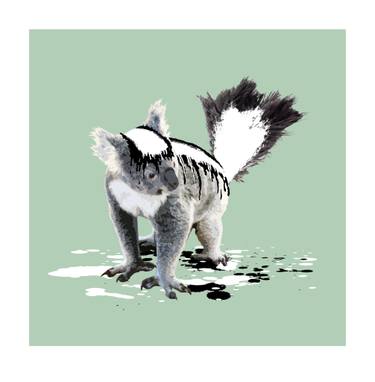 Carl makes work that sits on that fine line between comedy and tragedy with a pinch of the absurd. Works include animals pretending to be other animals who use found objects with a splash or two of paint, animals in the act of comedic suicide and another body which plays on the semantics of ice-cream. Dripsters are bold and colourful animals with their clear markings reduced down to individual drips of paint, which appear bar code like in their simplicity. The most recent work develops the Dripsters into super vibrant duotone prints focusing on animals with horns and tusks.