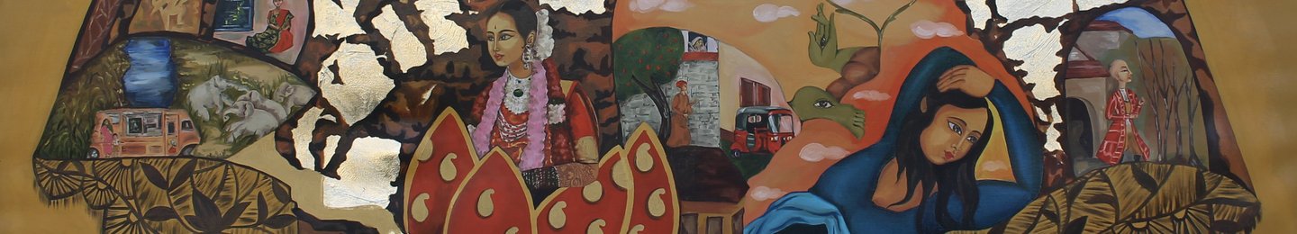 mythology in her art. While painting is her primary medium, she also incorporates fiber art and