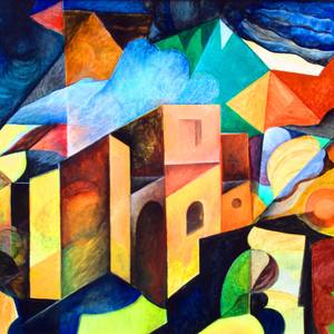 Fantasy Landscape, Illustration With Cubist Influence