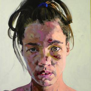 Lee Albert Hill uses a painting technique that combines foregrounds of hard-edged geometric mark-mak...