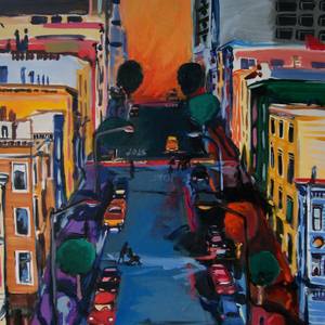 “In my work I enjoy expressing spontaneity and randomness with line and color, this gives the painti...