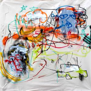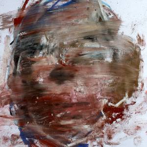 Green paints directly onto raw, unstretched canvas, working instinctively, without preamble or pause...