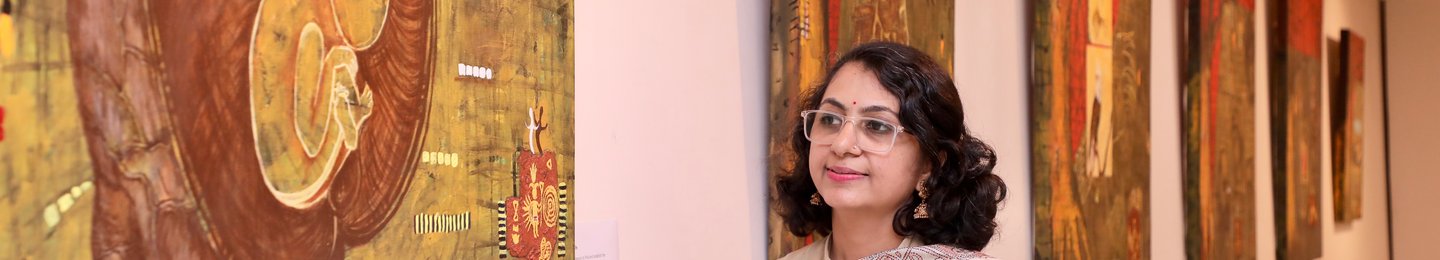 I started as all artists do with realistic or surreal works and now it moves beyond the limits of realism. Technique and formal elements changed to such an extent that the subject is no longer recognizable. Sourcing inspiration from within, I dive into an abstract world, articulating adventures with colours, shapes and patterns. The process is a balance between physical and mental power. My paintings are the beautiful part of inward journey of artist; still there are amazing possibilities for viewer’s prediction. Her paintings collections are in Florida, Italy, Dubai, Chennai, Mumbai and In Delhi.