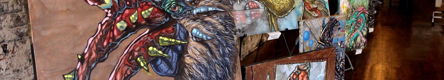 Keith Trimm is a Sci Fi Fantasy painter, illustrator and cartoonist from Fairbury Ne. He specializes in Acrylic on canvas with crazy monsters he creates in his head.