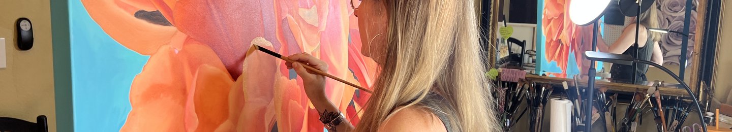 Susan Whigham is a self-taught artist in the Dallas/Ft.Worth Metroplex. Her focus is on the flowers she grows in her garden, her visiting pollinators, as well as the cloudscapes and landscapes in and around the DFW area. Susan brings a fresh spin to some of the most classic subjects. Her use of bright colors, light and shadows, retro patterns and contemporary color palettes offer something for everyone. Susan’s husband and her two teenage boys work as studio support and sometimes cheerleaders. From the flowers in their garden until the finished piece, it really is a family style, farm to canvas experience that she wants to share with everyone.