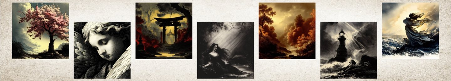 Witnessing the fast ascension of artificial intelligence, specially in the arts field, I started to play and experiment with different tools, and enjoyed so much some results that I decided to share them here. Some major influences are gravures, drawings and paintings by past centuries artists like Doré, Kittelsen, Dürer, Blake, Rackham, Escher, Friedrich, among others. I like to explore simple and universal themes mostly around nature and landscapes, with some darker touches, and also some medieval, fantasy and gothic themes, keeping a lithogravure / woodcutting / metallic en...