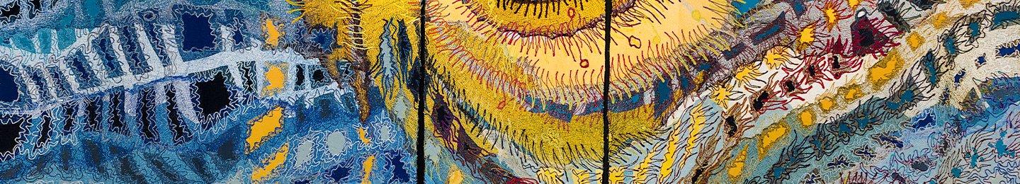 He is known for his Sartorial Statues and monumental needle-felted and embroidered tapestries that highlight the interconnectedness of nature, life and storytelling, offering a deeply human perspective on the world once described by Thomas Carlyle as ‘a Living Garment, woven and ever-a-weaving in the Loom of Time’.