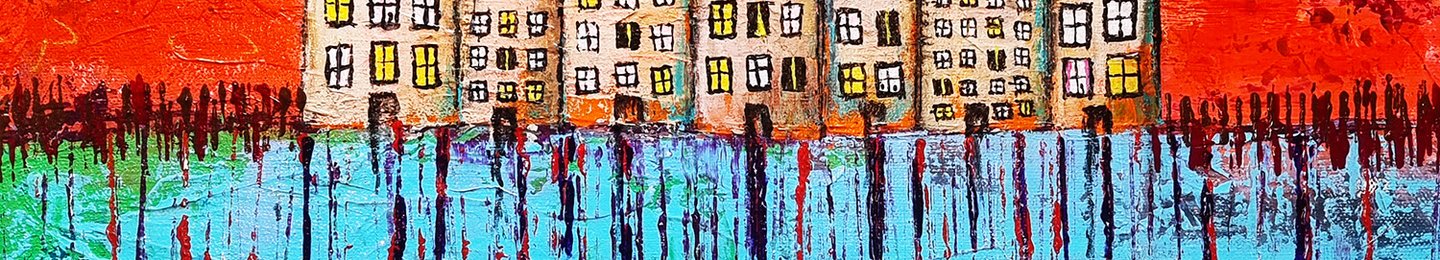 I studied art, specifically textiles but have since been drawn to painting and I love to create. I feel I am able to get fully absorbed into the process and enjoy building colors, shapes and textures. My work is loosely based on my environment in Scotland whether it be city tenements or beautiful costal scenes, I like to take some of the best bits and put it all together on canvas.