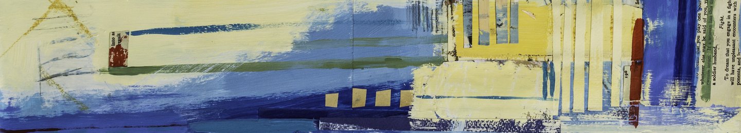 Currently, I work mainly on paper in mixed media using acrylic, ink, conte and collage. I like to work where a variation in line and paint texture causes a dialogue and speaks to me.