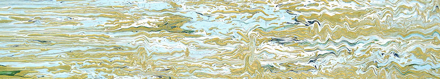 Color relationships, layering processes, and the use of immiscible materials define my art. My approach to painting originated in childhood with a beloved pre-school and home art activity involving the mixing of wildly varying household cooking ingredients and continued with an art-inspired education throughout grade school and college. Thus, my natural inclination is to experiment with materials and, in recent years, to find new and unique ways of coercing paint infused with metallics into visually captivating versions of natural environments.