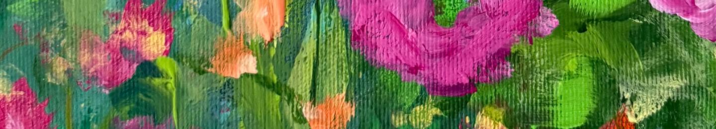 Each of my pieces is the result of a process in which colors, structures, and shapes come together to form a unique visual experience. Most often, I paint abstract expressionism on large canvases and flowers, pouring a piece of my soul into every work.