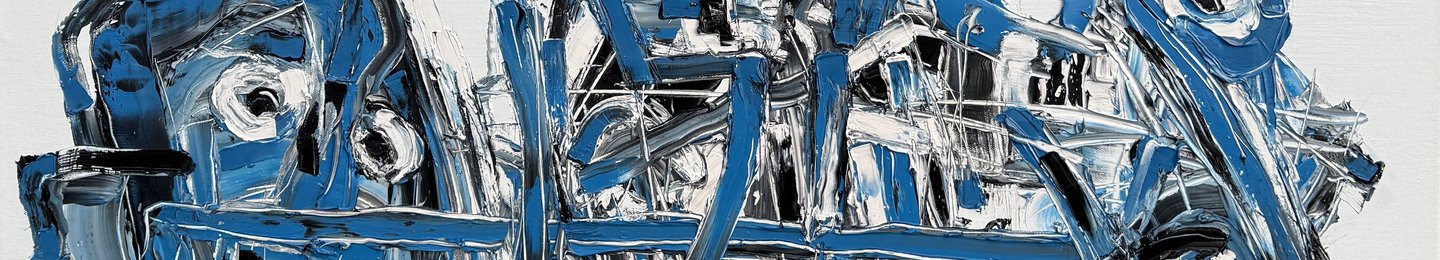 Hello and welcome to my studio! Here you will find my newest series of abstract paintings using only black, white and blue.
