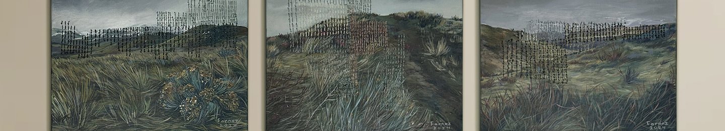 Farnaz Jahani is a painter, textile designer, and illustrator based in Dallas, Texas, originally from Tehran, Iran. Her work is a fusion of acrylic, watercolor, and embroidery, creating rich, textured compositions that reflect her deep connection to landscapes, cultural heritage, and personal stories.