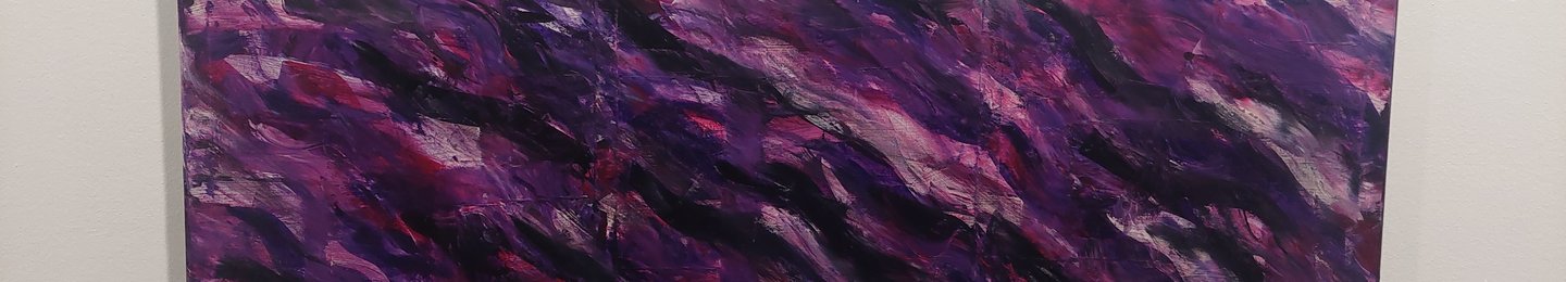 Er malt am liebsten mit Acrylfarben auf Leinwand oder Holz. Die Spachtel bzw. Farbabzieher ist sein ständiger Begleiter.