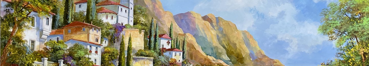 My paintings are known for their vivid, bold colors and cheerful themes. I often paint landscapes, but I also enjoy creating surreal compositions using palette knife techniques. I have a deep respect for the values of the past and for architectural heritage, which often appear in my work. Many of my paintings depict golden Mediterranean landscapes at sunset or nostalgic couples strolling through romantic, fairy-tale-like cities. While my art carries a light and pleasant atmosphere, it also reflects deeper, philosophical layers—spiraling trees that reach toward the sky, tower-like structures surrounded by birds—symbols of human aspiration and the pursuit of higher perspectives.