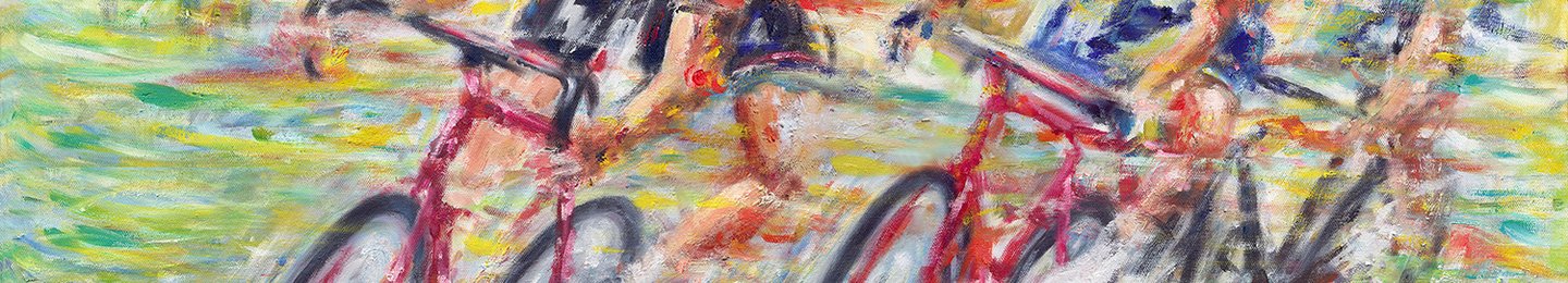 Stan paints vibrant landscapes, cycling, running,kayaking, seascapes, outdoor sports, nature, and people. He is an outdoorsman and travels to find unique landscapes and subjects. He paints from photographs he has taken on the location. His paintings capture the light, colors, clouds, environment in nature. His oil on canvas paintings have bold, rich, vibrant impasto brush work. Stan also does art restoration of 18, 19, 20th century oil paintings.