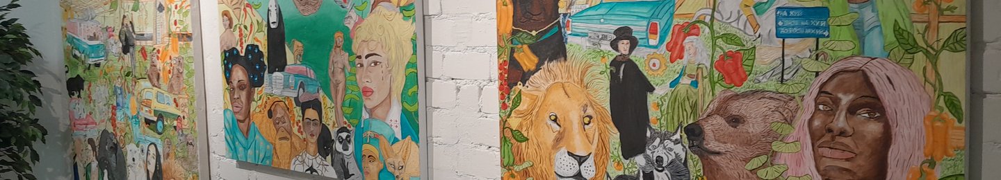 The Greenhouse series of paintings started from building a greenhouse for the artists’ retired father and finding the romantic side of botany and gardening. By observing the growth of plants as live beings, painting enabled to amplify the sense of progress and development even more. Greenhouse as an eco-system also symbolizes the matter of co-existence which on the colorful paintings is expressed by unexpected character and plant combinations. The harmony between plants of different sorts and sizes can be interpreted as a protest against inciting rage concerning race, family or gender. The artist points out that a person is never born a racist or homophobe – the anger derives from greed, colonialism and using religion and spirituality as weapons for controlling the society. Second, the greenhouse motive points at the environment, nature and climate and the critical situation of our planet. All of the above is done by playing with the symbols and ele...