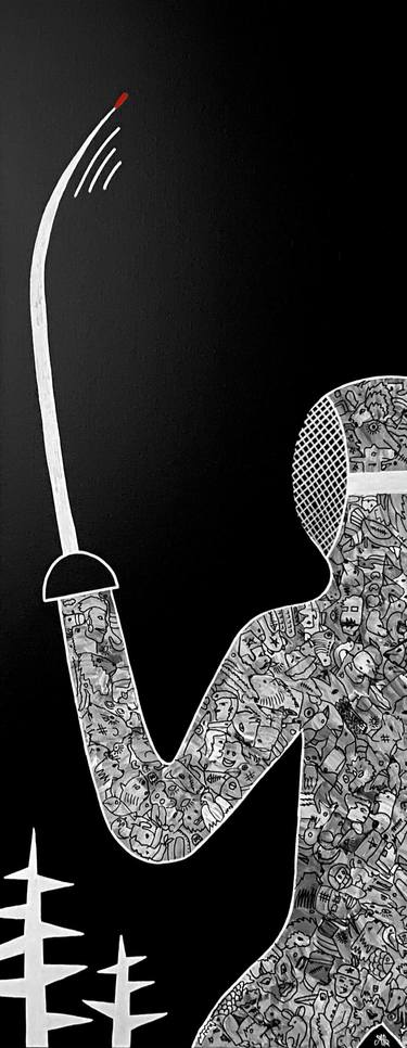 I am currently working on “Common Man” series. The main subject in each piece ,“Our Hero”, depicts the daily life of a person in different scenarios. Some of the paintings represent everyday tasks like running or dog walking. Others show the more adventurous side such as his “Cliffhanger” or “Ropewalker” pieces, while others show the challenges and pressures in as seen in his “Rising Corporate Ladder” painting.