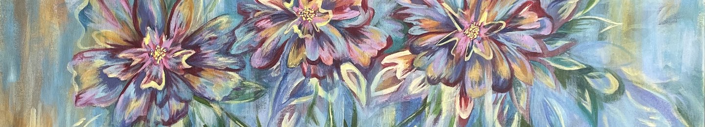 Working primarily with acrylics and linen, her art often features floral motifs that explore themes of freedom, balance, and joy.