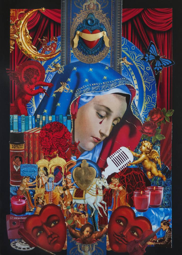 Collage art, The Virgin of Pain, saying goodbye. Collage: Paper, glue, cut&paste, Virgin **********************paper and glue************************