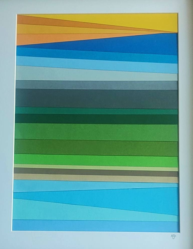 This work explores various landscapes and scenes, stripping them back to their basic colour palettes without the details of a realistic image. Her pieces aim to encourage the viewer to look beyond the details and explore their environment on a deeper level, without the everyday distractions.