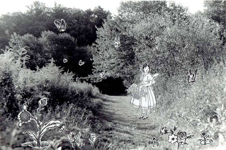 Paper collage on silver gelatin print, signed by artist.