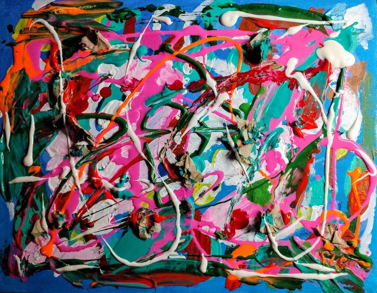 "Aquarium: Abstract Expressionist Acrylic with Collage on 11 x 14 inch Canvas Panel, March 2025 by Wendy Stewart" immerses viewers in a vibrant underwater fantasy, crafted by the inventive artist Wendy Stewart. Completed in March 2025, this unframed 11 x 14 inch canvas panel blends acrylic paintin...