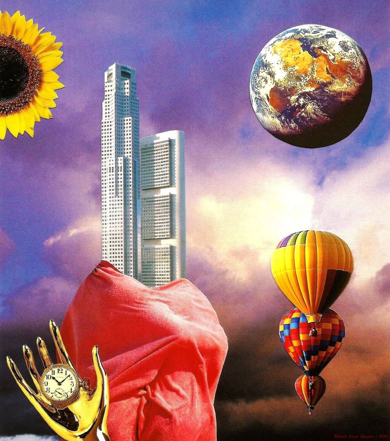 Roberto Oscar Gasperi (1953) is an artist who resides in Buenos Aires. He makes it very clear in every piece of Art he creates that his favourite tools are "scissors, paper and glue". Yes, you guessed it correctly he creates collages. And what a prolific artist he is as well. His family must have a hard time negotiating all the scraps of paper he generates as a by-product of his collage making. Roberto's collages take you into a surreal world. However, his surrealism is based on real world characters in a surreal or incongruous setting, such as football players in the desert with a saintly figure looking down on them, to a boat floating along a canyon or even a Queen's Guard standing to attention in a pastoral setting. One can easily relate to all of Roberto's collages (compared to say some of the old world surrealism such as Dali) as his characters and settings are all contemporaneous. However, that is where you have to stop. It is difficult to fathom what is going on within Roberto's mind. Not being fluent in Spanish may make it a double jeopardy. However, this made it even more enjoyable for me as we can fill the pictures with our own fantasies. That is what creates the mystique around Roberto's collages. His subjects take on an immense range and variety as well from Oriental Figures to Classical and Modern Architecture and from roadblocks made of giant fingers to astronauts. So have a great time dwelling on some of Roberto's Artwork here. Do not worry, when you are done here there is plenty more to keep you occupied for weeks in his Pages and Blogs. And in the end while you will have had a most enjoyable time, you will still not be any deeper into Roberto's mind. Bon Voyage or as Roberto might say Buen Viaje. John Smith** Paul Maenhout: Congratulations. I like your pictures very very very much. The surrealistic setup reminds me to famous painters as Rene Magritte and Salvador Dali. I do not understand why you get so few likes, this work belongs tot the very best on Youpic, maybe the best of all. A lot op people here have no own style, everyone copies from everyone. Your style is unique. I feel very curious again and again after the story that is hidden in every composition, every picture awakes my fantasy. This differs completely from the next boring flower or insect. The favourite tools of Roberto Oscar Gasperi (born 1953), a Buenos Aires-based psychologist, are only scissors, paper and glue.