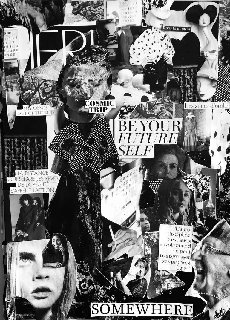 Collage Artist Born In 1968, in Neuilly-Sur-Seine, Delphine Housard de La Potterie was first a lawyer before becoming an artist. Those two professions far from being antagonistic, have in common imagination and the power of words. For personal reasons, dhdlp moved to Hong-Kong, then London, where she decided to change career path and study Design. Raised from a young age in an artistic environment, she developed a passion for colours and shapes which led her to become an interior designer. in her new job, dhdlp started creating mood boards which initiated her love for collage. Fully aware on how colours and words can impact people, her collages are the means by which she expresses herself. Like witnesses of a world in perpetual motion, her collages are comparables to newspapers articles narrating our time an can be interpreted as satires of modern society.