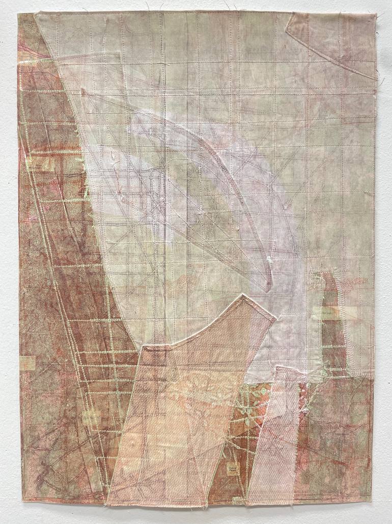 When the pandemic hit I decided to use materials I had on hand. I sewed scraps of old shirts onto topographical maps and printed on the combination. My practice seemed out of time and place and felt free to explore color and texture in ways I hadn't before. It was a grounding as I worked; connecting...