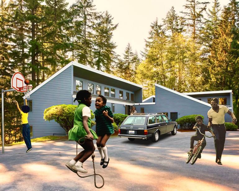 Nostalgic tableaus of intimate social moments, placing beautiful people having A Good Time in the foreground of magnificent spaces. These whimsical works exhibit playfulness and joy on the surface, with an underlying theme of reclaimed ownership of space. I have other sizes available for purchase: ...