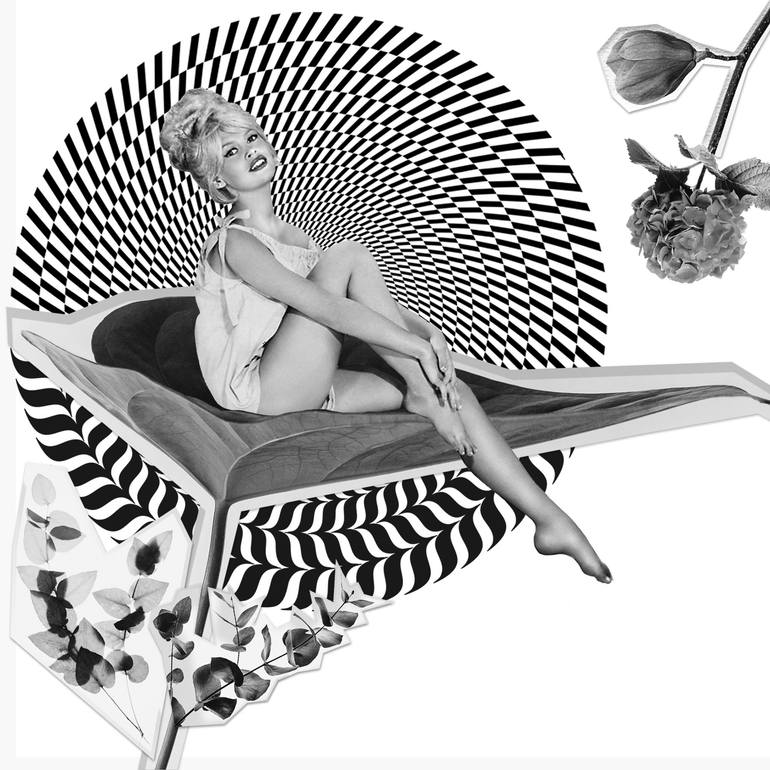 Brigitte Bardot, Hydrangea © Pelin Atilla This work was made by Pelin Atilla, 2022, USA. This artwork is inspired by Brigitte Bardot's grace. It includes black&white photo of Brigitte Bardot, circle patterns, natural details, and flowers. A surreal approach has been adopted in the work of art. ...