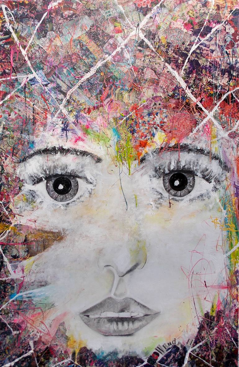 Wendy Helliwell is a visual artist from Edinburgh. She grew up in the 80’s and her work is influenced by fashion, pop culture and advertising from glossy fashion magazines. Primarily self taught Wendy advanced her passion studying courses at Edinburgh College of Art. With celebration and critique Wendy puts the spotlight on our consumerist culture by deconstructing and reassembling fashion magazine (regularly Vogue) often over repurposed fabric. She aims to display diversity with a sustainable and innovative approach by the use of multiple materials, including many throw away effects. Layers of detail and colour often in three dimensional form mimic the arresting values of the initial magazine adverts themselves. “These tangible cultural references are at risk of obsoletion so they become very precious to me whilst I work with them. I want to seduce the viewer initially just like the glossy magazines do with the use of bright colours and bold text. I want to recreate this is in a fun and humorous way but there is always a darker undercurrent present within my work which will hopefully also get us questioning our own materialistic habits.” Over the last 15 years Wendy’s work has been shipped worldwide and her recent commission for the first ever Virgin Hotel in Europe showcases her 2 most popular styles. Her large three dimensional ‘Virgin Lips’ constructed from 1 pair of jeans and magazine pieces are proudly located beside the concierge and her two almost life size Quirky Queues grace the entrance to the events space in the recently converted church next to the Eve restaurant. “These were huge and exciting pieces for me to work on and definitely the biggest project I have created as of yet within my career as an artist.”
