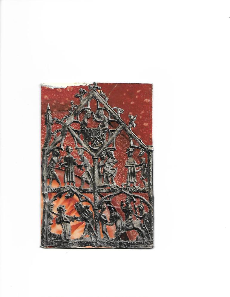 After cutting out picture of Medieval ironwork was playing around with other images. Finding the red microorganism was happy accident, as was fact that image tore slightly when affixed to card. All seems to fit.