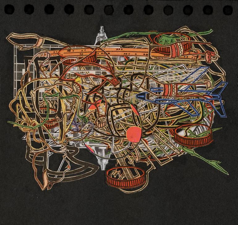 I approach collage as a medium of drawing and painting using vintage children's books/ephemera, no photocopies or digital manipulation. All intricately hand cut, no laser cutting, carefully layered using archival glue stick and diluted wallpaper paste applied w/a very small brush. Cat Boy Jet is ...