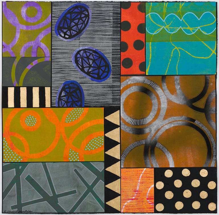 This piece was inspired by the Mexican holiday, El Dia de Los Muertos. While traveling in Oaxaca, Mexico I was inspired by the many rituals and celebrations I saw there. The abundance of colors, patterns, nature, and celebrations inspired the monotypes and carved stamps I used to create this series ...