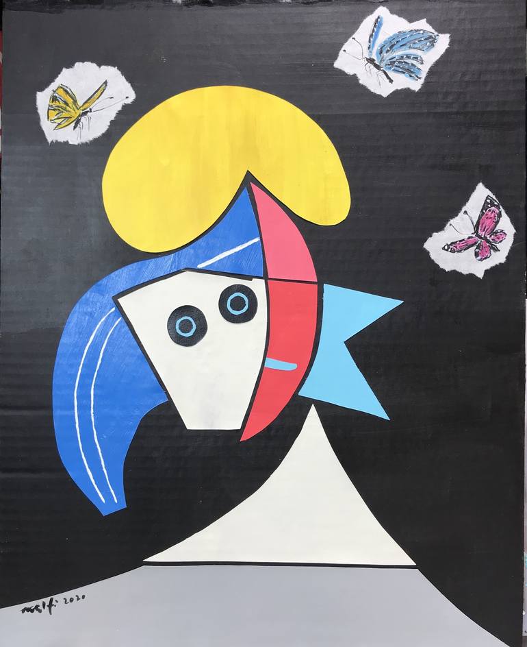 This is an on-going series of collage works in various styles and subject matters. This mixed media Collage is a rather whimsical take on an oil painting done in 1935 by Picasso, titled "Woman's Head". It is a rather simple semi-abstract but very powerful imagery of the type of portraiture that ...