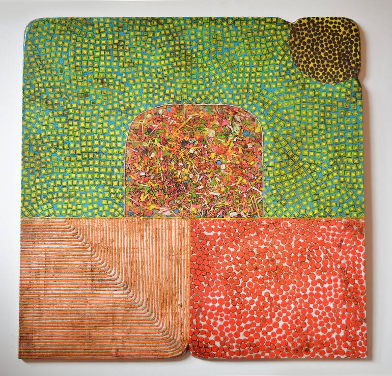 collage on wood, ready to hang Influenced by colonial art as well as native indigenous artistic practices, my paintings are distinctly Latin American in their hybrid blending of both a European and a South American heritage. Using collage as my primary medium, I combine the whimsical elements of N...