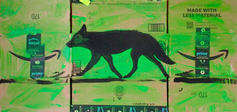 Painted on an opened and flattened Amazon shipping box. 1 of a series I'm creating. I am combining my art with the iconic graphics of Amazon.