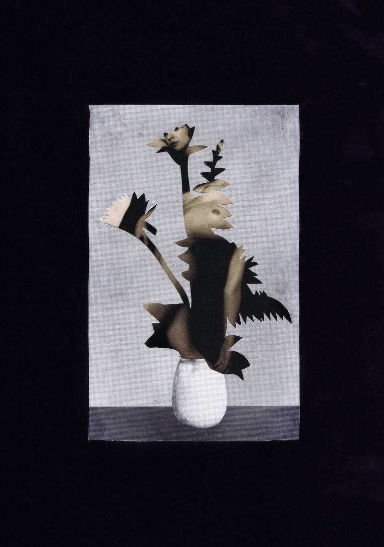 This collage is part of the series "Decorations" it is minimal and modern, but keeps a nostalgic atmosphere, due to it's monochromatic colors. It shows the female body in a floral shape and reflects the beauty of the female body and how it is used as decoration not only in art but also in society or...