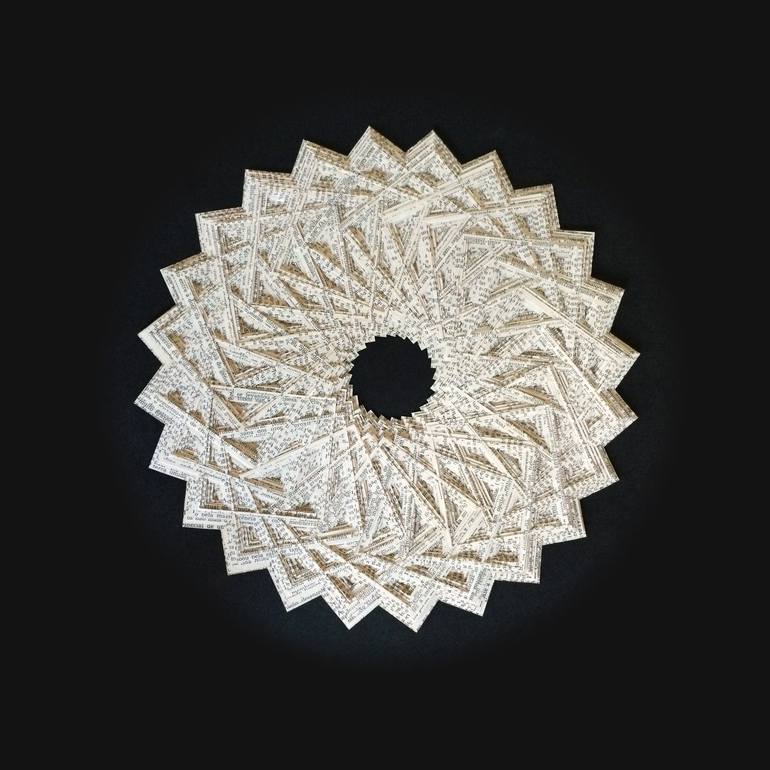 Had-cut book pages on cardboard. One can say that phrases and texts are nothing more than a puzzle of words and letters diversely connected (with infinite possibilities) in order to create meaning. Following this idea, I used 168 individually hand cut squares (representing words) that together cr...