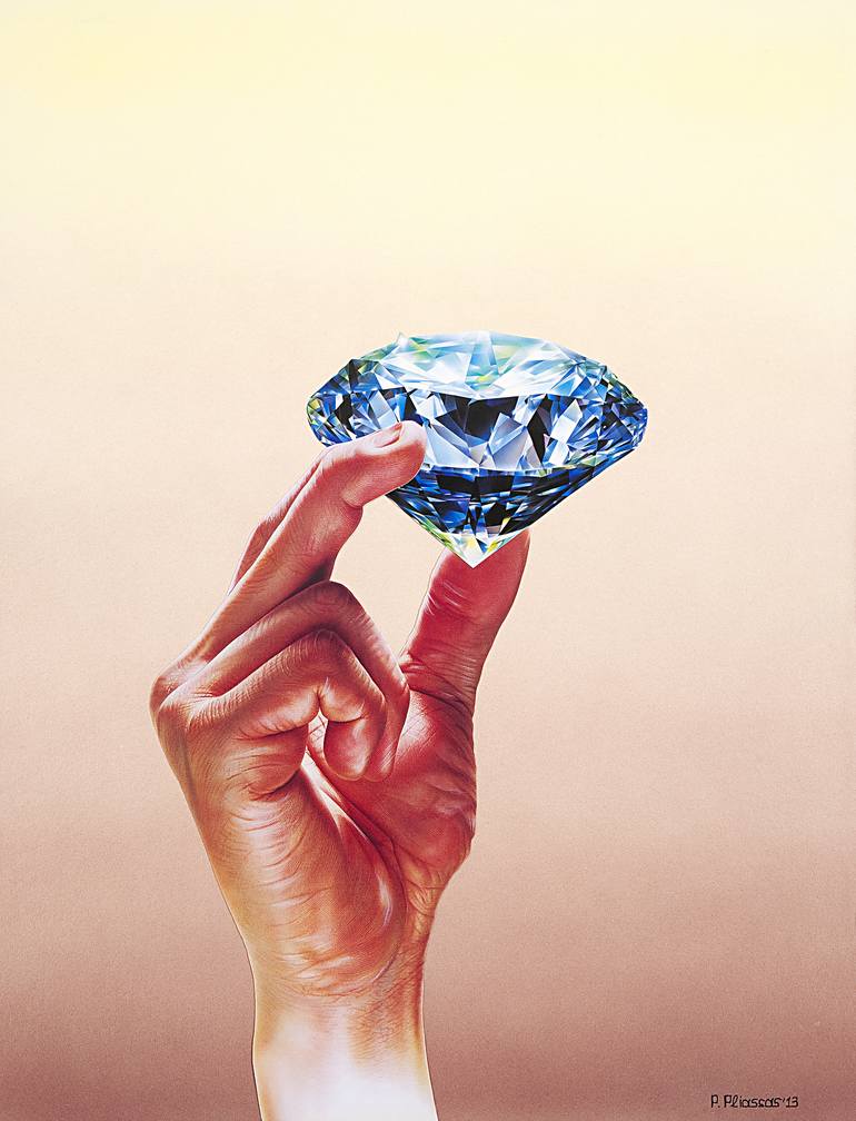 With this artwork, I'm expressing my beliefs for the value of diamonds and the effect to the people. This analogue Collage artwork with Mixed media - Background and details created by Airbrush paint, Acrylics, pen, pencils and cutting photos. Sale as Limited-Edition of...
