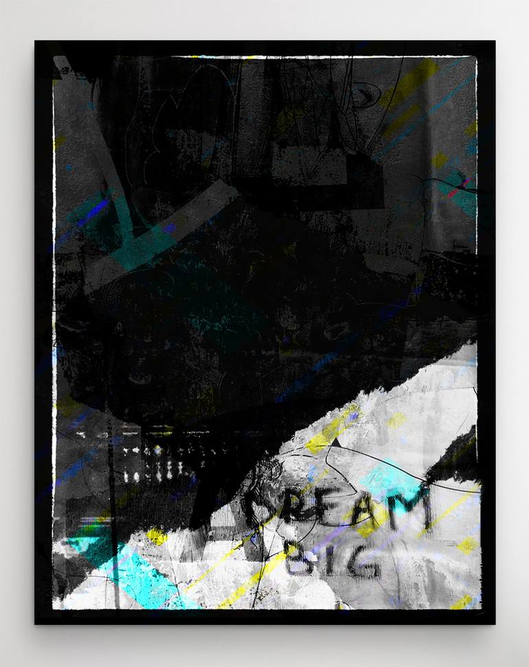 Dream Big How big will you dream? How far will you let your dreams take you? A mixed media collage composed from personal materials and found objects - constructed, blended and deconstructed in a digital space. 16" x 20" x 1.5" Limited to One only - printed on 380 g/m² silverada metallic canva...