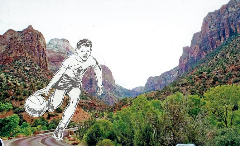 Color Photograph & Vintage Paper Illustration Collage, 4x6in. 11x14 white mat and modern wood, white frame, Signed on back. Photograph taken by artist Ready to hang.