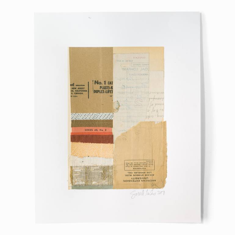 Sarah has found truth and validation in Andy Warhols statement “An artist is somebody who produces things that people don’t need to have.” While having great respect for artists that are able to make a powerful statement through their work, for her, art is not required to have meaning nor purpose. With old book pieces, ephemera and subtle signs of life as her palette, she combines worn colors and textures to create a sublime balance and richness.