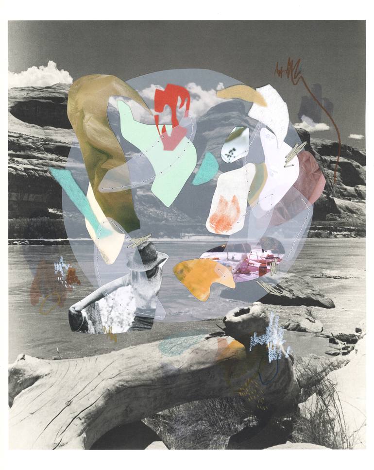 From the "Go Again Home, Can't You" series - About memory, place, belonging – and perhaps also, unbelonging. I consider them a shared landscape – a history, impression, and humanhood that encompasses experience both inside and outside our unchosen inherited homes. Hand sewn collage with vellum on ...