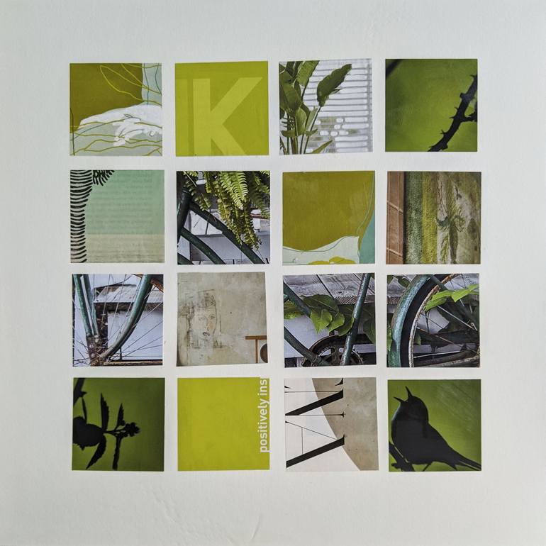 This artwork was inspired by my color photograph of a bicycle My intention is to give the viewer a glimpse into my feelings about the places I remember. I love working in collage and using vintage book and magazine pages, old letters, wallpapers, posters, postcards, stamps, and other ephemera in my ...