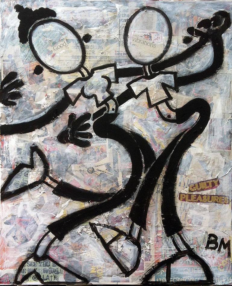 My 'Wall of Sound' music paintings. I always work with my guitar close at hand. Paint a bit, play a bit and my muse dances on. I love working this way, un-planned, using any materials that come to hand. The musical energy just jumps onto the canvas, spins around and leaps into a receptive viewers heart and arms! It's wonderful to make someone smile. Music to my eyes and ears. For seven years or more I was the WORLD FAMOUS PADDINGTON BEAR'S official artist. One of my fine art prints PADDINGTON AT THE STATION was donated by its owner to the Newton Free Library Print Archive in Newton Massachusetts. I'm also a quirky vaudevillian, cartoonist, stand-up poet and songwriter. In 2014 one of my works was shortlisted for the UK's Royal Academy of Art Summer Exhibition.