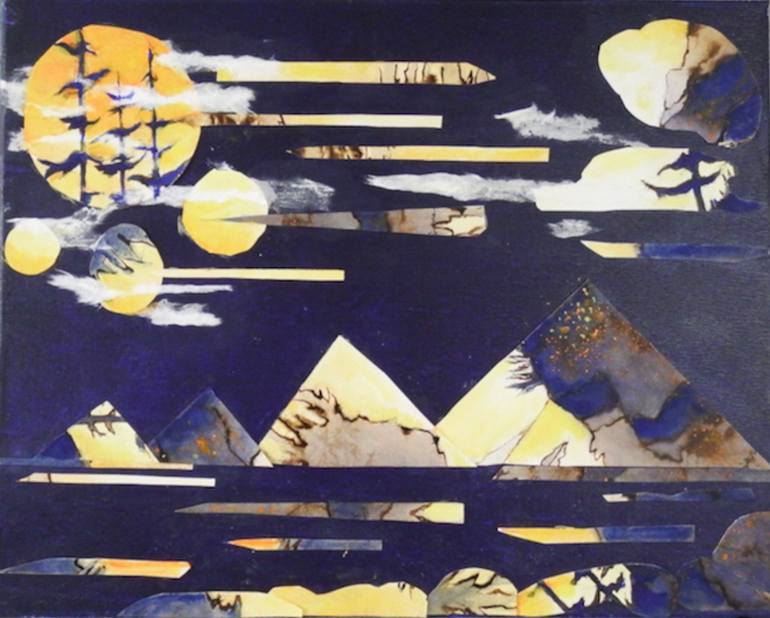 My work in collage has been evolving. Now I am working with my old watercolour paintings to create something completely new - whimsical, semi abstract landscapes. They are atmospheric, otherworldly, yet still can be recognized as a landscape of a kind. There is a lot of texturizing in this piece if...