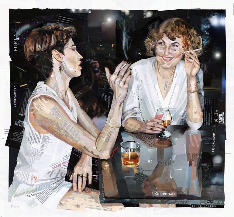 Imaginary scene, which never took place in reality. Decorative handmade collage from magazine clippings. Dimensions include white margins.